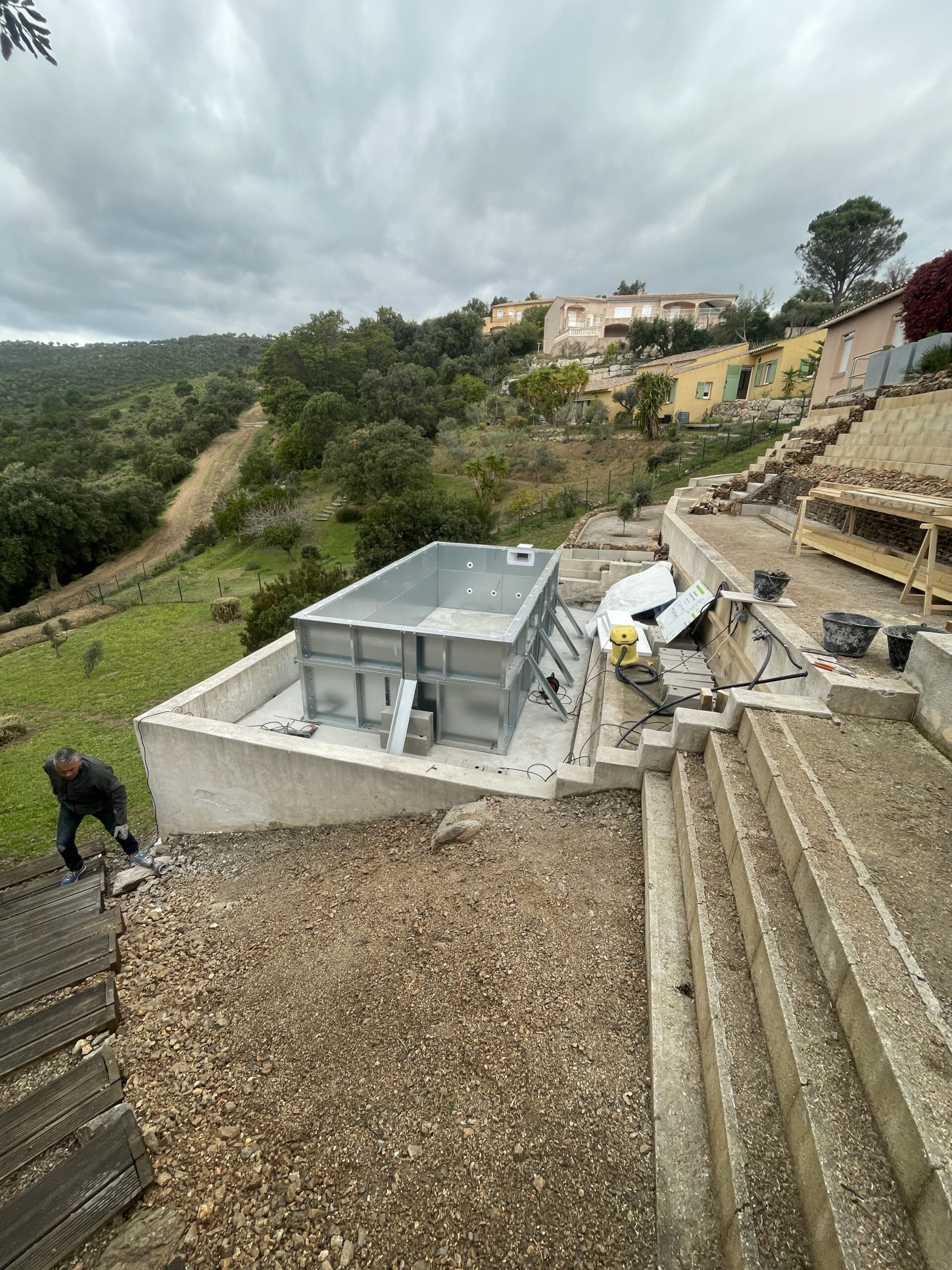 2,50x1,80m, faible hauteur, idéale pour les enfants. liner anthracite + accessoires anthracite